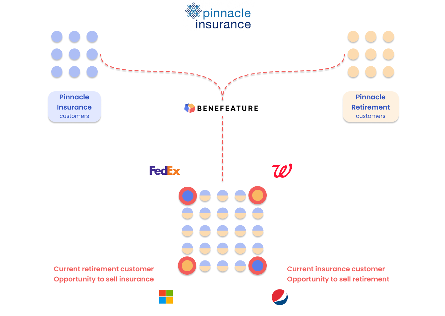 Identify common customers across both retirement and group benefits to spot warm leads and cross-selling opportunities.