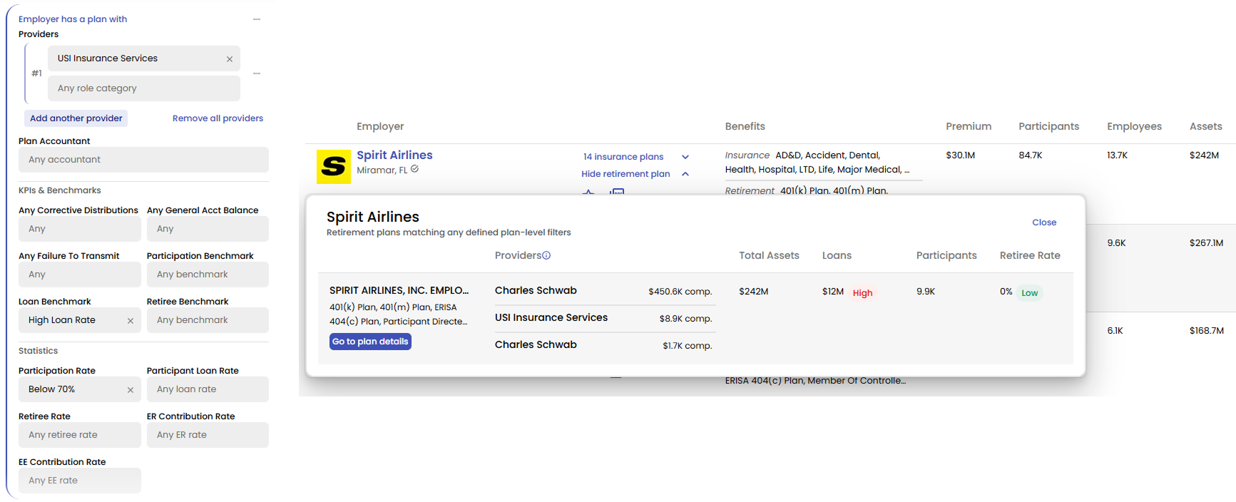Spot coverage gaps by identifying employers with high loan rates in their 401(k) plans, indicating potential need for additional benefits.